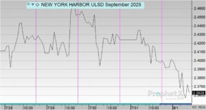 Diesel prices opened at $2.3965 on Monday and trended upward through midweek, reaching a high of $2.4580 on Wednesday. However, the gains were short-lived, with prices easing to $2.4240 on Thursday and settling at $2.3985 on Friday. Despite some volatility, diesel ended the week with a slight increase of $0.0020 or 0.08% from Monday’s open.