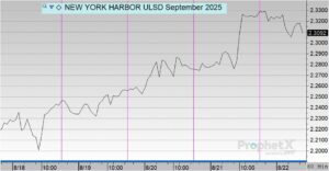 Diesel prices opened at $2.2286 on Monday and trended higher throughout the week. Prices rose to $2.2475 on Tuesday and $2.2610 on Wednesday, before continuing upward to $2.2751 on Thursday. The rally extended into Friday, with diesel opening at $2.3312, marking the weekly high. Overall, diesel gained $0.1026, or 4.6%, for the week.