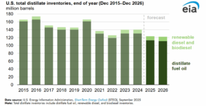 According to the U.S. Energy Information Administration (EIA), diesel inventories are forecasted to end both 2025 and 2026 at multiyear lows. That’s not just a number, it’s a warning. Lower inventories mean a higher risk of price volatility, especially during peak demand seasons like the autumn harvest and winter heating months.