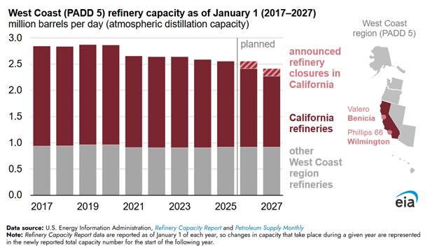 The push for greater in-state production comes as California faces multiple refinery closures. Two major refineries are expected to shut down by late 2025 or early 2026, cutting gasoline production capacity by an estimated 17%. These closures are expected to heighten dependence on imported fuels and add pressure to the state’s already strained fuel market.