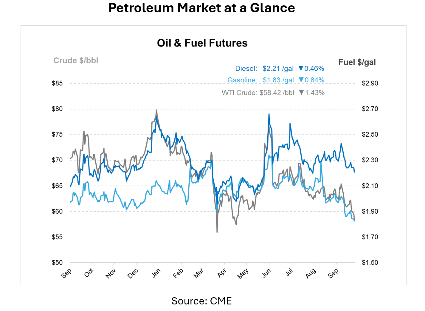 The information contained herein is derived from sources believed to be reliable; however, this information is not guaranteed as to its accuracy or completeness. Furthermore, no responsibility is assumed for use of this material and no express or implied warranties or guarantees are made. This material and any view or comment expressed herein are provided for informational purposes only and should not be construed in any way as an inducement or recommendation to buy or sell products, commodity futures or options contracts.