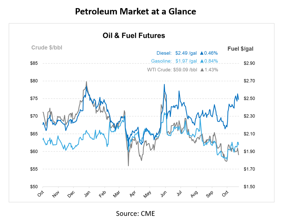 The information contained herein is derived from sources believed to be reliable; however, this information is not guaranteed as to its accuracy or completeness. Furthermore, no responsibility is assumed for use of this material and no express or implied warranties or guarantees are made. This material and any view or comment expressed herein are provided for informational purposes only and should not be construed in any way as an inducement or recommendation to buy or sell products, commodity futures or options contracts.