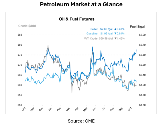 Freight activity is a critical driver of U.S. diesel consumption, and the sustained weakness in shipments signals potential softness in demand. Trucking accounts for more than 75% of shipments tracked by Cass, meaning fewer goods moving across the country translates directly to reduced diesel burn. While diesel margins have recently increased by $7/bbl this month due to tight supply and strong European export demand, the underlying fundamentals suggest caution.