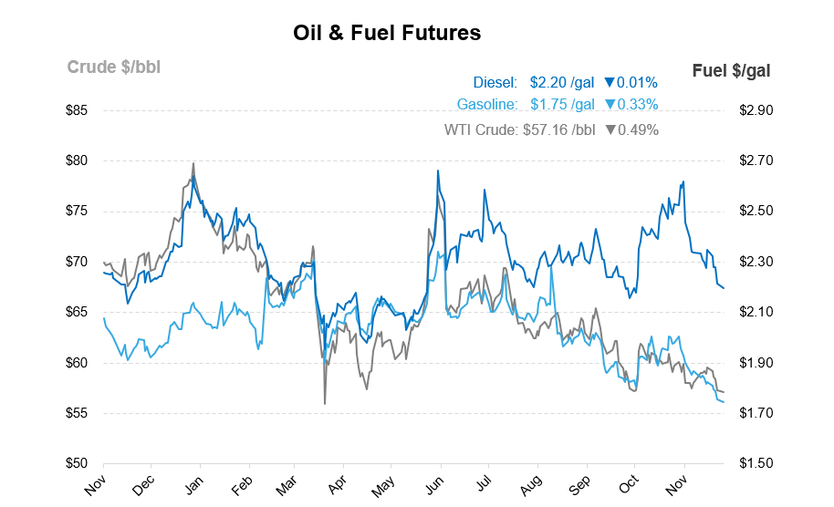 Despite softer crude prices, diesel continues to behave differently. U.S. distillate inventories remain tighter than gasoline, and diesel futures are trading roughly 50 cents above gasoline.