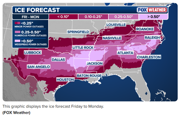 3. With power outages possible across the impacted region, consider any generator demand. Keeping generators full and ready for icy conditions is important to maintaining critical facility operations.