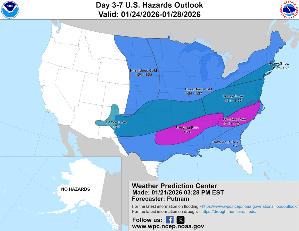 Mansfield is closely watching the evolving forecast and coordinating with our carrier and supplier networks to support continuous operations. For customers with inventory management, our team is proactively topping off tanks to ensure adequate fuel levels before and after the storm. Call‑in customers are encouraged to contact their support team to discuss upcoming fuel needs in areas that may be affected.