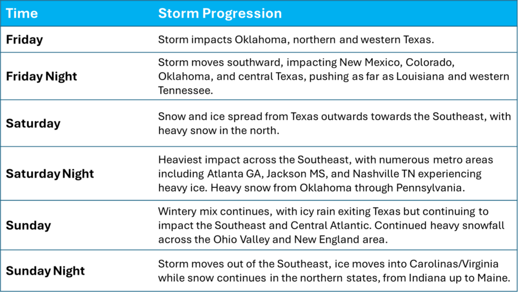 For fuel markets, storm conditions mirror the heavy winds and dangerous conditions of hurricanes. Power outages can impact fuel terminal operations, delaying deliveries after the storm. Moreover, post-storm temperatures will be a major consideration – low temperatures could cause ice damage to linger for days, delaying recovery efforts.