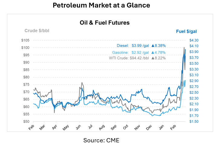 The information contained herein is derived from sources believed to be reliable; however, this information is not guaranteed as to its accuracy or completeness. Furthermore, no responsibility is assumed for use of this material and no express or implied warranties or guarantees are made. This material and any view or comment expressed herein are provided for informational purposes only and should not be construed in any way as an inducement or recommendation to buy or sell products, commodity futures or options contracts.