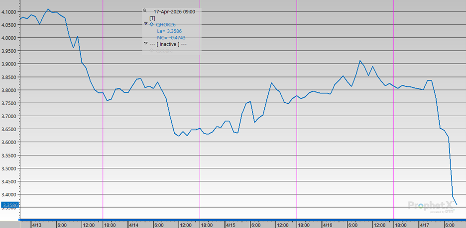 The scale of disruption is significant. Earlier estimates suggest as much as 13 million barrels per day of oil production has been knocked offline, with total export losses even higher when refined products are included. Natural gas recovery could lag further, with some LNG terminals requiring more than two years to return to normal operations. In the physical market, this is already showing up in tighter supply, stronger spot pricing, and increased competition among refiners, particularly in Europe and Asia, where some are beginning to cut runs due to limited feedstock availability.