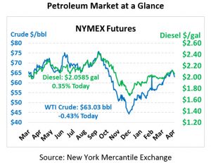 Fuel prices are mixed but relatively flat in trading this morning. Diesel is trading at $2.0585, a fractional gain under a penny. Gasoline is trading at $2.0943 a fractional loss under a penny.